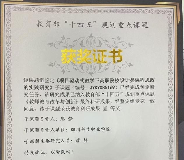 恭喜我院廖静老师获得教育部 “十四五” 规划重点课题壹 等奖。&
